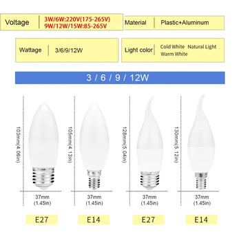 Illuminate your space with the 10 pcs E27 E14 LED Candle Bulbs. Designed for energy efficiency and aesthetic appeal, these bulbs are perfect for home decoration, creating a warm and inviting atmosphere.